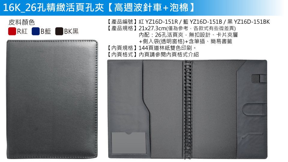 YZ16D-151【統義】16K精緻活頁孔夾-26孔活頁(高週波針車+泡棉)【萬用手冊工廠】【出清品工廠】【客製化工廠】【文具用品工廠】【工商日誌工廠】【活頁手冊工廠】【超便宜工廠】【3000免運】【文具工廠】接受進行原廠委託設計製造ODM