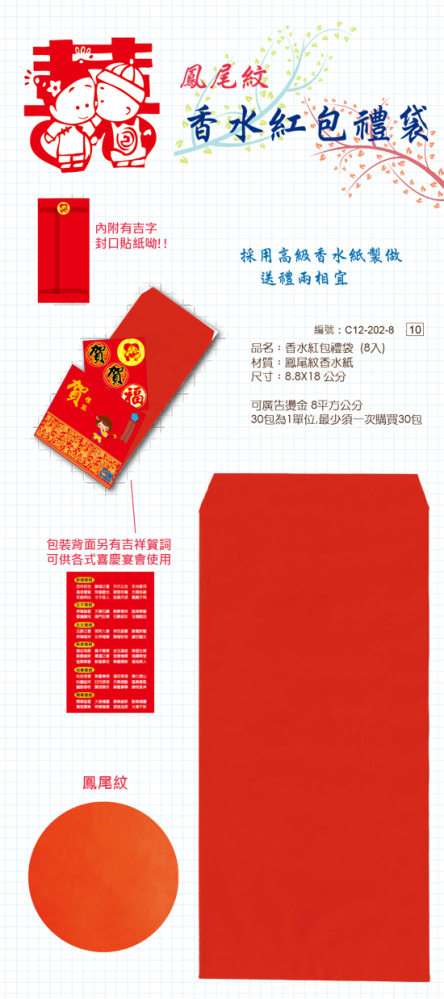 材質: 鳳尾紋香水紙 尺寸: 8.8X18 公分